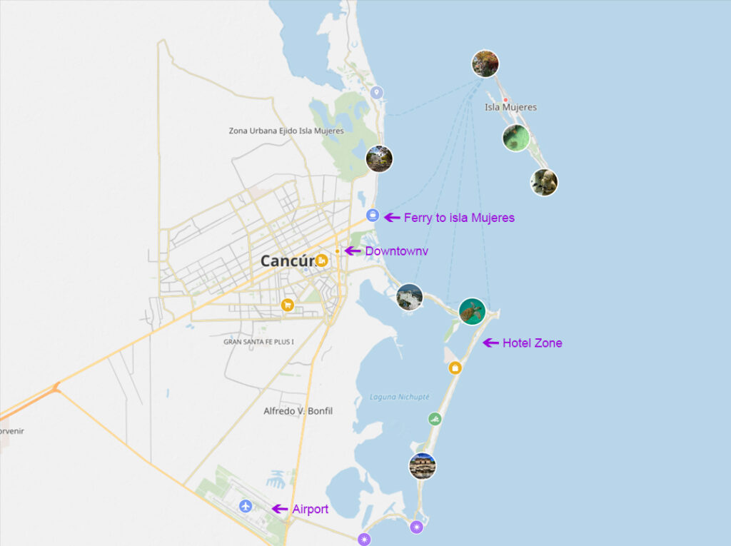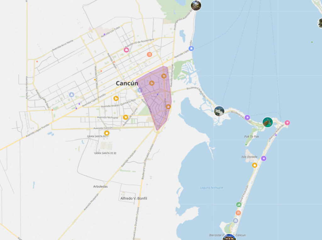 If you are going to choose to stay in the downtown part of Cancun, I recommend you stay in the pink zone shown on the left. This way you’ll be close enough to the action and will easily be able to jump on one of the busses to the beach area.